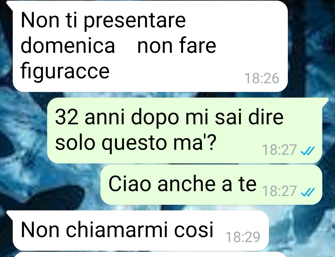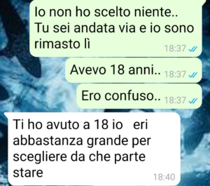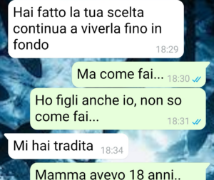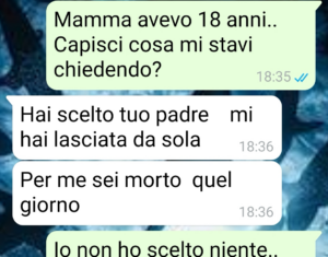 “Mi chiamo Alberto e anche se ho quasi 50 anni mi chiedo ancora se chi ha due genitori che si separano venga mai capito davvero fino in fondo. Tutti parlano del dolore di chi lascia, di chi viene lasciato, di chi soffre di più, di chi ha ragione e di chi ha torto. Però quasi nessuno parla di noi figli, che in mezzo a tutto questo ci finiamo senza aver scelto niente. E la cosa più brutta è che qualunque cosa fai sembra sempre sbagliata per qualcuno. Se resti vicino a uno, allora hai tradito l’altro. Se provi a non schierarti, sembri freddo. Se cerchi di tenere insieme i pezzi, ti ritrovi in mano solo colpa. Io credo che un figlio non dovrebbe mai essere punito per come ha reagito al divorzio dei suoi genitori, soprattutto quando era troppo giovane per capire davvero cosa stesse succedendo. E invece a volte succede proprio questo: paghi per anni una scelta fatta nel caos, nella paura, nel dolore. Per questo oggi racconto una chat che mi pesa come un macigno, perché certe cose non passano mai e, anche quando fai finta di sì, restano lì.!”