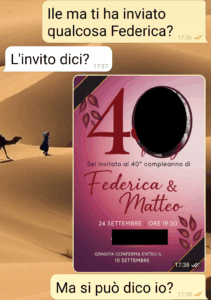 “Sono stata invitata a una strana festa di 40 anni dalla mia amica Federica. Ma una chat con Ilenia e le cose sono precipitate.