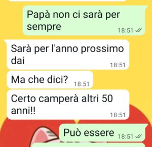 E non è giusto. Mio padre non si merita di essere dimenticato. Io penso che a volte quando ti fai grande è come se le persone si dimenticassero che esisti. Sei ancora vivo? Boh… e non ti vengono più a trovare. Non ti chiamano più perché sei anziano e non ci senti bene e magari qualche cosa te la scordi e magari hai qualche problema di salute.