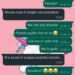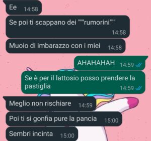 Vi lascio la chat, così giudicate voi se sono io che esagero o se questo è ufficialmente fuori di testa.