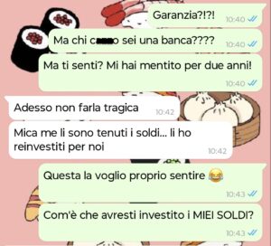 Vi lascio la conversazione, e se avete consigli su come recuperare quei soldi fatemelo sapere.”