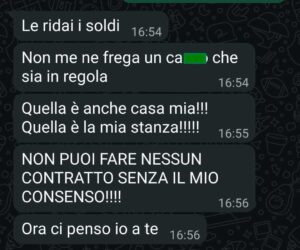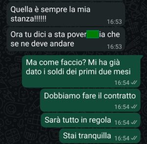 So quanto mia figlia ci tiene alle sue cose, ma la sua stanza è ormai vuota. È solo un guscio triste. Ho avuto la fortuna di trovare una ragazza a cui affittarla. Mi sono informata ed era una cosa possibile. Le avrei fatto anche regolare contratto. Ma se mia figlia non vuole ho le mani legate. Vi giuro che non sono una egoista, che si vuole prendere le cose non sue. Voglio solo sopravvivere, avere qualche soldo per vivere decentemente. Solo questo.