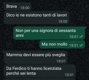 “Ciao Spunte, sono una signora avanti con gli anni. Ho perso il lavoro e mi hanno tagliato il gas perché non ho pagato le bollette. Ho scritto a mia figlia per parlare un po’ con lei ma..