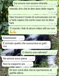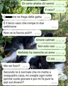 In questi mesi l’ho vista fare tanta fatica… ho cercato di aiutarla al meglio pulendo la lettiera o robe simili, ma ovviamente non vivo con lei e non posso esserci in ogni momento. Alba ha veramente pochissima pazienza e non è abituata ad essere disobbedita, o meglio, non è abituata a non ricevere quello che chiede quando lo chiede e come lo chiede. Classica figlia unica abituata ad essere servita e riverita. Ci sono alcune cose che non mi convincono di lei, ma il colpo di grazia è stata la sua reazione dopo l’ennesimo disastrino di Mafalda… mai avrei pensato che potesse arrivare a tanto.