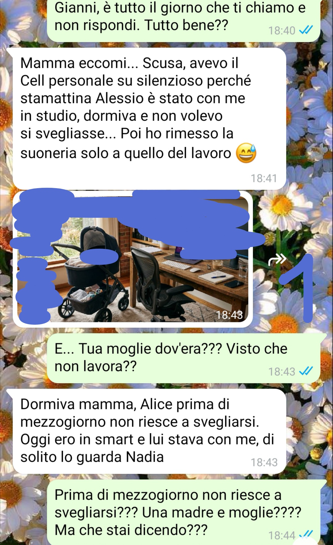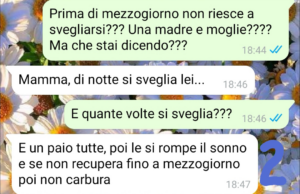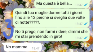 Però vengo a scoprire il motivo delle mancate risposte…ed è una cosa che mi lascia letteralmente senza parole. Ora…sono matta io a vederla così?? E come dice mio figlio alla fine della chat o ho ragione io???? Come credo ovviamente mandando la chat…”