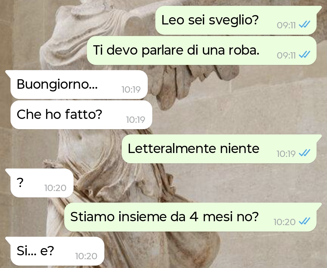 Il problema è che Leonardo questa volta mi ha risposto sinceramente, e la motivazione è stata a dir poco agghiacciante, oltre che irrispettosa. Lui non posta foto con me per non ferire i sentimenti di una terza persona. Ci rendiamo conto?