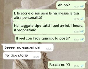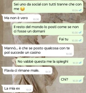 Mi chiamo Alice e ho scoperto per caso di non essere l’unica donna nella vita del mio fidanzato Leonardo. Il tutto è venuto fuori quando gli ho chiesto perché non postasse mai foto o storie con me sui suoi profili social. Dopo 4 mesi di relazione la risposta “non sono uno da social” non mi andava più bene! Cioè, posso capire andarci piano all’inizio, ma dopo un po’ è strano se posti tutti e tutto tranne me! Mi sentivo presa in giro ad essere sincera e per questo gli ho fatto la domanda secca.