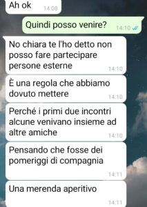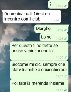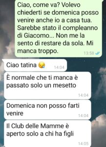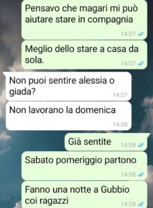 Premetto che io l’ho sempre sostenuta in questo, come sostengo sempre le mie amiche, ma come spesso accade molte persone hanno il vizio di sparire quando sono gli altri ad aver bisogno. È quello che è successo con Margherita e questa chat è la prova che le persone riescono a essere solo egoiste.