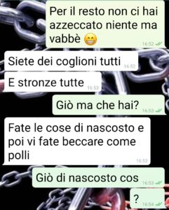 “Quello scemo del mio amico Giovanni mi incolpa perché non lo avremmo coinvolto con glia altri amici in una uscita. Io voglio che questa chat la leggiate, amici di spunte, per farvi vedere come si può essere tanto scemi. E come si diventa dopo aver avuto un figlio (lui eh, e sua moglie, perché sono scemi appunto, non perché ogni genitore è così). Siamo un gruppo coeso di 30 enni circa, una decina con i vari fidanzati/e che si sono aggiunti nel tempo. Siamo riusciti a mantenere questa comitiva dai tempi del liceo. E sempre ci ritroviamo, da allora. O tutti o a ranghi ridotti poco importa. Giovanni, l’amico della chat in questione, è stato il primo a diventare genitore. Lui e Luciana da allora sono scomparsi dai radar. Giuro che non li vedo da 2 anni se non al supermercato o per strada. Perché hanno un figlio e non è come prima. E adesso questo scemo viene a cazziarmi perché per l’ultima uscita nessuno lo ha contattato…veramente 2 settimane fa. Ma c’è un motivo se vi mando tutto adesso…”
