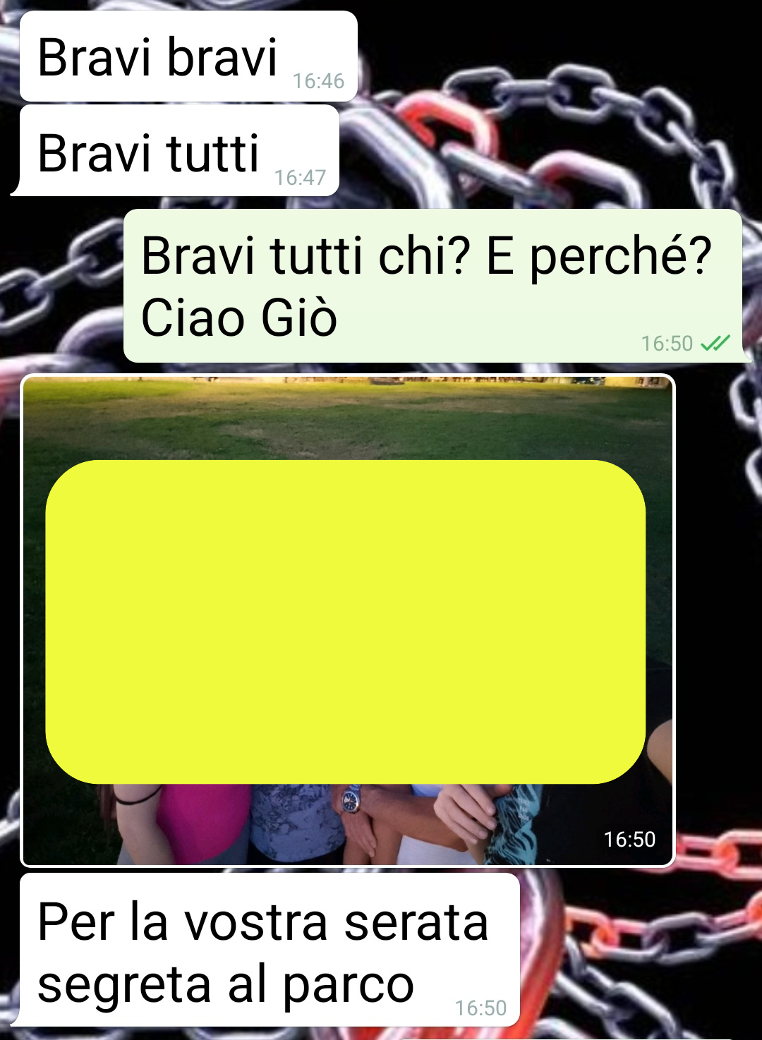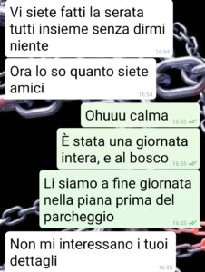 “Quello scemo del mio amico Giovanni mi incolpa perché non lo avremmo coinvolto con glia altri amici in una uscita. Io voglio che questa chat la leggiate, amici di spunte, per farvi vedere come si può essere tanto scemi. E come si diventa dopo aver avuto un figlio (lui eh, e sua moglie, perché sono scemi appunto, non perché ogni genitore è così). Siamo un gruppo coeso di 30 enni circa, una decina con i vari fidanzati/e che si sono aggiunti nel tempo. Siamo riusciti a mantenere questa comitiva dai tempi del liceo. E sempre ci ritroviamo, da allora. O tutti o a ranghi ridotti poco importa. Giovanni, l’amico della chat in questione, è stato il primo a diventare genitore. Lui e Luciana da allora sono scomparsi dai radar. Giuro che non li vedo da 2 anni se non al supermercato o per strada. Perché hanno un figlio e non è come prima. E adesso questo scemo viene a cazziarmi perché per l’ultima uscita nessuno lo ha contattato…veramente 2 settimane fa. Ma c’è un motivo se vi mando tutto adesso…”