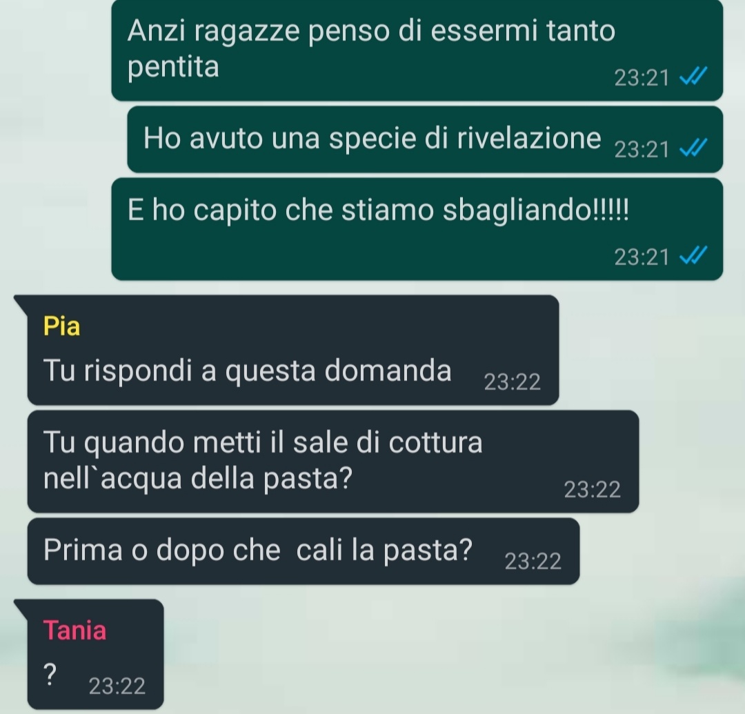“Che dire, era il disastro. Capendo che non c’era via d’uscita ho immediatamente screenshottato tutto inviandomi gli screen. Le ho spento il telefono ma la mattina dopo è ovviamente venuto tutto a galla. Anche in questo caso, lei poteva arrabbiarsi quanto voleva, ma che importava, ero io il primo a essere disgustato dal suo comportamento: altro che influenzata, a quanto pareva era lei la regina delle sconcerie che aveva proposto a tutte questo divertimento perverso!
