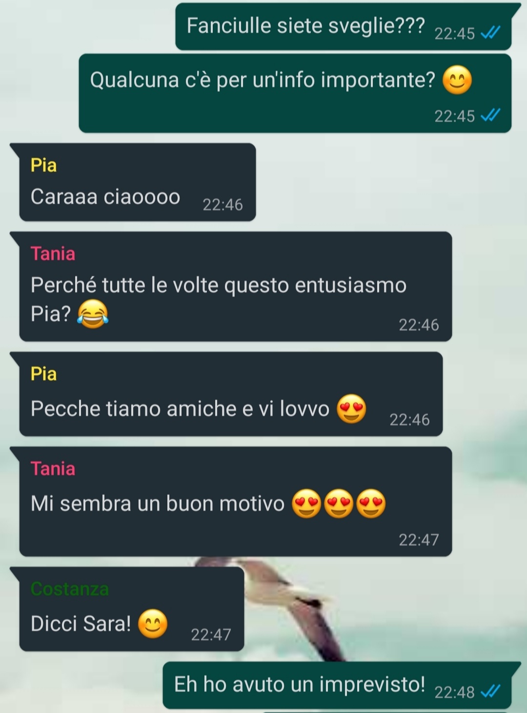 “Mauro stavolta non poteva riuscire a convincermi. Nella mia testa avevo già stampato quello che avrei fatto e anche le parole da scrivere (avevo passato venti minuti a leggere tutte le frasi tipiche della chat con queste amiche). E allora ho lasciato stare il mio amico e sono entrato nella gabbia dei leoni…”