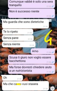 “Ciao spunteblu…mi chiamo Valeria e vi scrivo perché il mio ragazzo non mi parla da giorni, per colpa di un vassoio di salsicce. Sembra assurdo ma è così e io non so cosa fare…non risponde alle mie chiamate e nemmeno ai messaggi…sono giorni che lo cerco ma niente. Non riesco a capire perché si sia arrabbiato così tanto, io stavo solo cercando di aiutarlo nella dieta ma lui ha reagito male e ora mi sento in colpa come se lo avessi ferito…