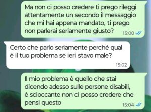 “Ciao Spunte Blu, mi chiamo Federica e vi scrivo da Genova. Ieri sono andata a fare un’escursione con una mia amica ed è successa una cosa che mi ha lasciata veramente di stucco. L’amica del misfatto – con cui oggi ho avuto una chat che vi mando – si chiama Angela. Non posso dire che siamo amiche d’infanzia ne che (per fortuna…) ci conosciamo da una vita ma bensì solo da qualche anno; ecco credo che qualche anno appunto adesso possa anche bastare per mettere un bel punto a questa nostra amicizia, perché dopo quello che ho visto ieri da parte di Angela dubito che vorrò mai più rincontrarla o riparlarci anche solo per un secondo in vita mia”