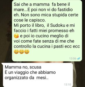 È solo una vacanza. Solo qualche giorno al mare, come facevamo una volta. Io, lei e l’odore della crema solare. Io che le tenevo il cappello mentre costruiva castelli. Lei che mi chiamava ogni tre minuti per mostrarmi una conchiglia.