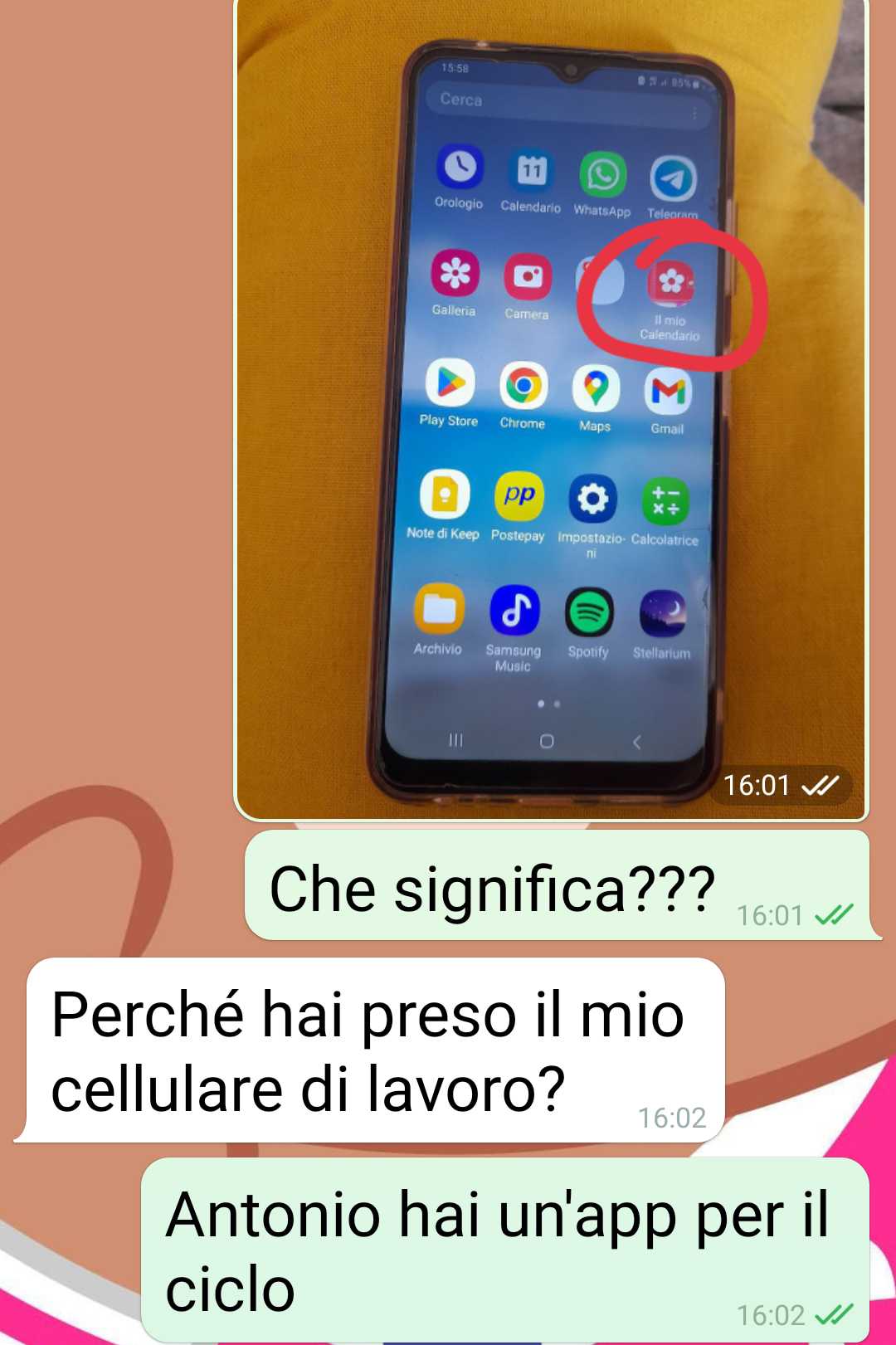 Insomma in questo cellulare trovo una app per il ciclo. Ho detto ma che minch** è sta cosa??? Niente l’ho aperta e ci ho trovato dentro il mondo. Cicli segnati da prima del 2021. E tante altre cose simpatiche.