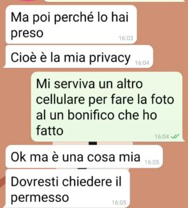 Vi mando sti screen perché io non posso credere al casino che è riuscito a creare. Non posso credere che la persona con cui dormo ogni notte sia la stessa che ha fatto sto bordello e che mi ha preso in giro per tutti questi anni.”