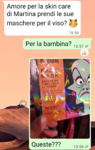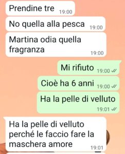 Ma mia figlia fa la skin care serale!! A 6 anni!!! Sua madre le mette delle schifezze in viso che nemmeno so ripetere ma che le fanno male, che la fanno soffrire ne sono sicuro. Mia moglie mi ha buttato fuori casa 3 mesi fa. È una donna abbastanza impossibile, ma in questi mesi ho ripensato a cosa mi aveva portato a innamorarmi di lei. E insomma ci stiamo riprovando…. Anche per martina nostra figlia, che è la cosa più preziosa che ho…