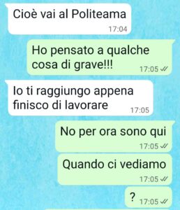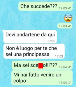 C’è stato un solo problema: mentre giravo tra le bancarelle del mercato, il ragazzo che ho conosciuto questa estate al mare mi diceva di andarmene subito da lì. Me lo ha ripetuto mille volte facendomi spaventare. Che cosa c’era di tanto pericoloso in quel posto?? Cioè io pensavo a questo. A qualche cosa che non andava e ho avuto paura….