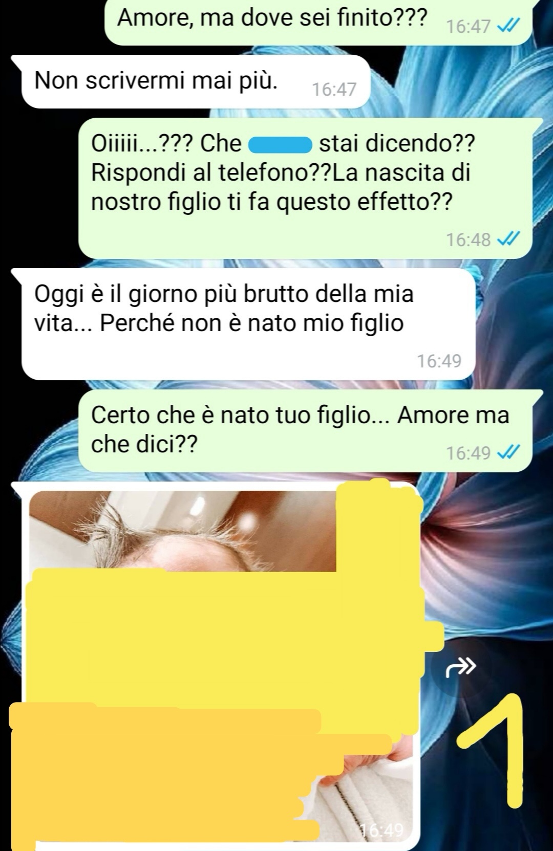 E quando è nato, niente…io non avevo mai provato un amore così grande, né visto niente di più bello in vita mia. Ma…quando mostrano il bambino al mio compagno (che non è stato accanto a me durante il parto) lui non mi sembra felice come avrei creduto. Sinceramente.