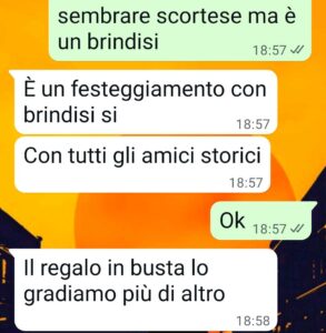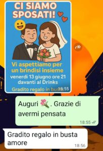 “Una mia amica mi ha invitato al suo Brindisi di nozze. Vuole il regalo in busta senza spendere niente.