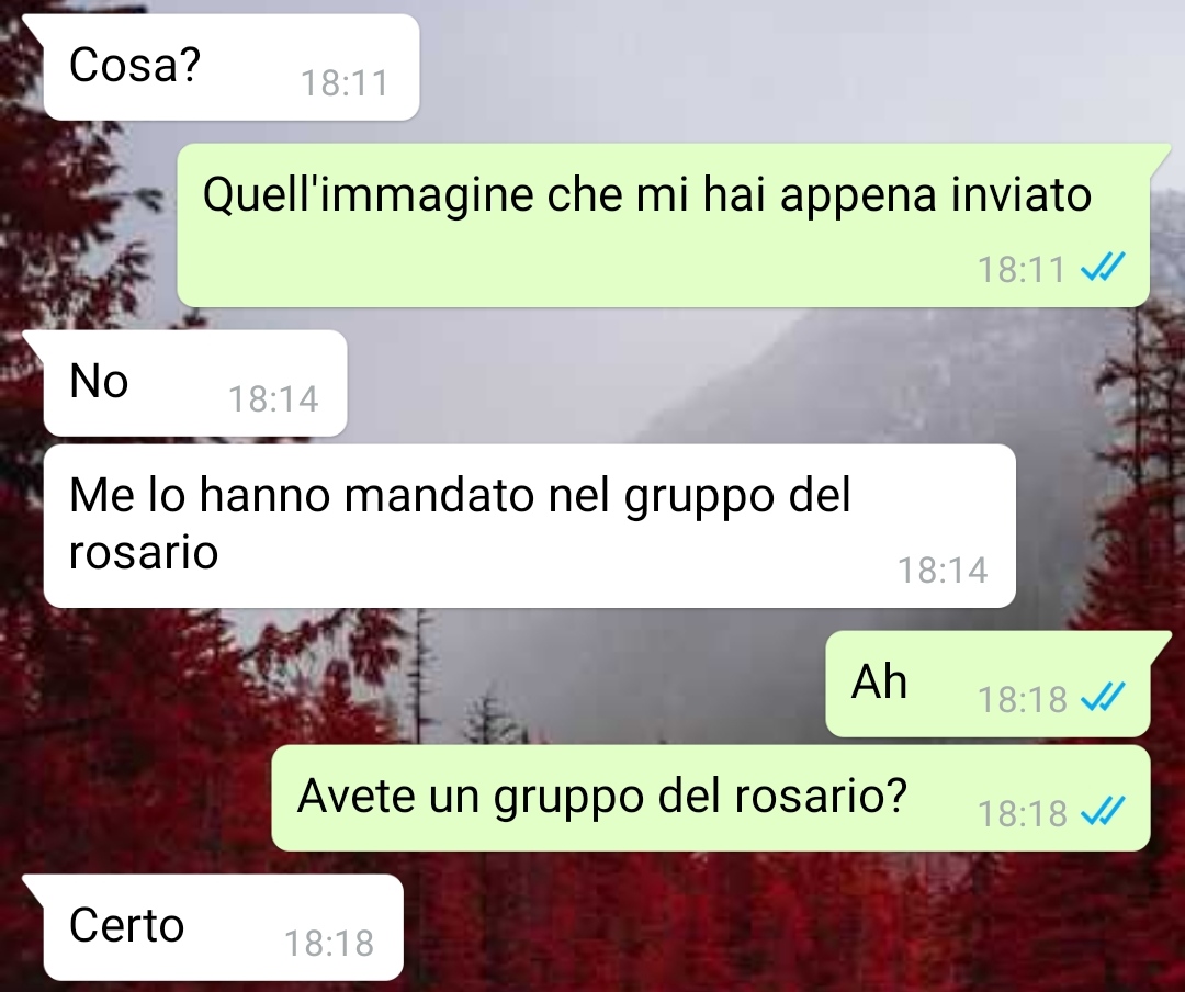 Come vi ho spiegato la scorsa volta, è una persona un po’ su di giri, su certi argomenti è particolarmente esagitata, come appunto quello della Chiesa e della religione, ma vi assicuro che non è una persona cattiva o pericolosa, assolutamente no, per nulla.