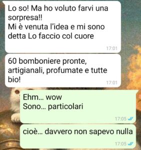 Pensavo fosse la solita foto, un commento, magari l’ennesimo consiglio sulle decorazioni dei tavoli secondo i suoi gusti…