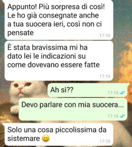 Luana e mia suocera vanno molto d’accordo. Luana ha un negozio online di cose fatte a mano… che possono piacere o non piacere. A mia suocera piacciono molto. Ha comprato da lei molte cose e sono diventate tipo amiche. E va bene così.