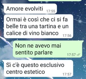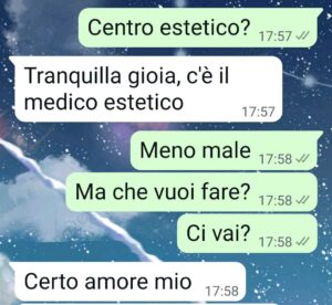 alla fine però, ho fatto una cosa che non è da me. Forse non sono solo i ritocchi estetici a non farci riconoscere più. In fondo a questa chat io non mi sentivo più me stessa, come se il botox me lo fossi fatto all’anima.”