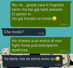 Ho una sorella in un altro paese, ci sentiamo ogni tanto, ma non può muoversi molto e nemmeno io. Qualche amica ce l’ho, del circolo o della parrocchia, ma alla nostra età ci si vede di rado, e con le pensioni che abbiamo si conta pure l’autobus.