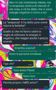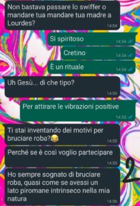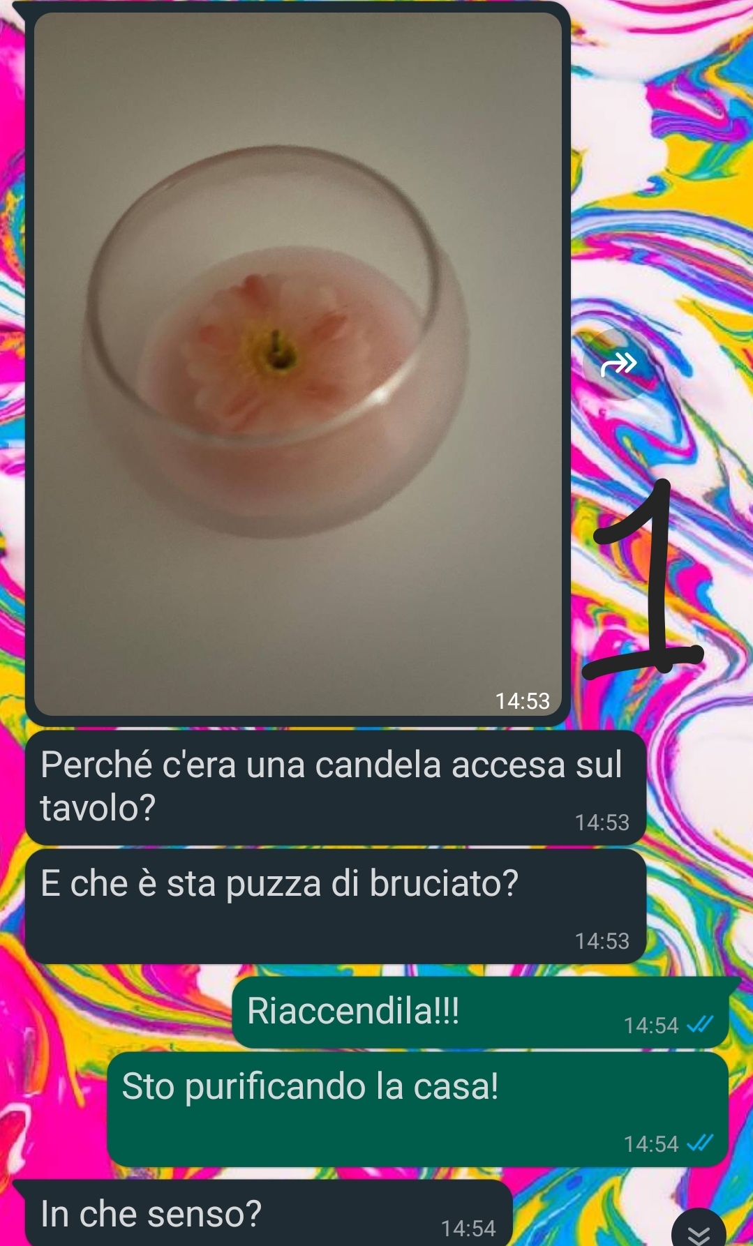 Ho acceso una candela che mi ha dato lei per chiudere il ciclo tossico e ho messo sale dietro la porta. Flavio ha pensato che stessi cucinando, poi ha visto la foto bruciata nel piattino. Era una sua, sì, ma tranquilli, era simbolico. Da quando ho fatto il rituale, lui è più dolce o forse solo più spaventato, ma sono sicura che io farei di tutto per noi. Voi ci credete alla magia? Sto esagerando?”