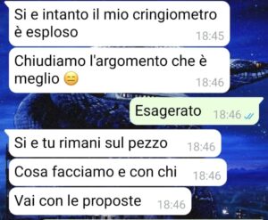 Poi lui fa sempre così. Non è che ti scrive tutto subito, no. Ti manda un messaggio esplorativo e poi ti intorta con l’ennesima cosa che si è prefissato di fare e che è super urgentissima.