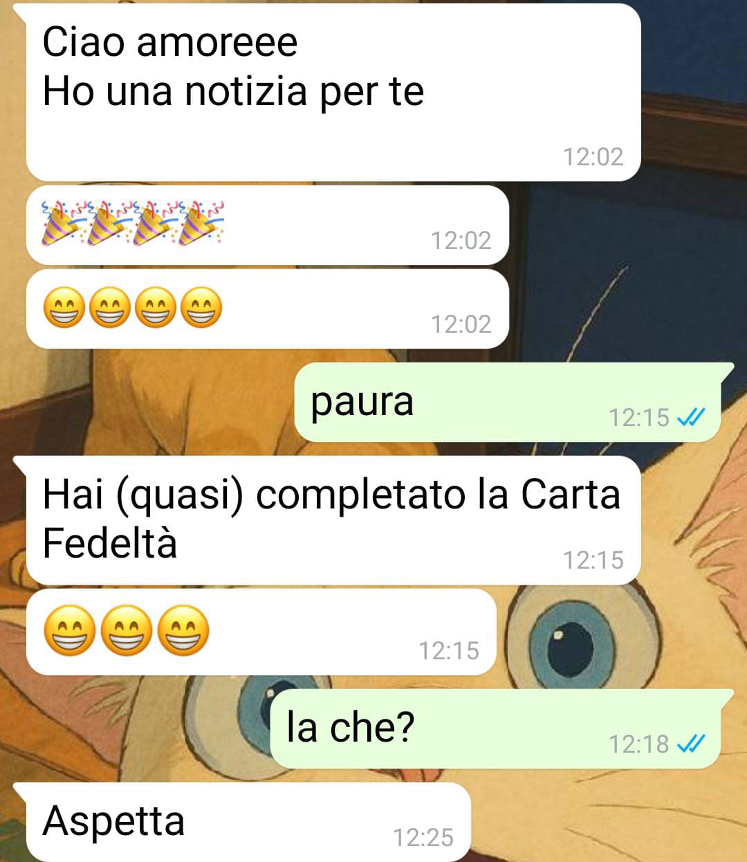 Pensavo fossero idee di lavoro o cose sue. Invece stava facendo qualcos’altro: stava creando una “carta fedeltà” un po’ particolare.
