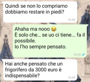 Certo, magari la lista era un po’ lunga… ma stiamo parlando della PRIMA casa. È ovvio volerla bella, accogliente. Non è che possiamo mangiare per mesi su una sedia pieghevole o cucinare con le pentole del supermercato.