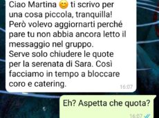 Quando ho ricevuto il messaggio nel gruppo, ho pensato fosse uno scherzo. “Serenata per Sara – 25 ottobre ore 21:00. Quota di partecipazione obbligatoria: 100€ a persona.” Obbligatoria. Cento euro. […]