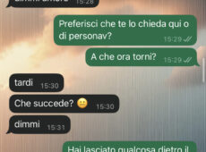“Ciao a tutti lettori, vi mando una chat con il mio (forse non più??) ragazzo Matteo, quando ha avuto la brillantissima idea di chiudermi a chiave dentro l’armadio della sua […]