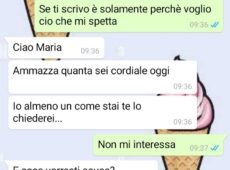 “Ciao a tutti, mi chiamo Maria vi mando questa conversazione avuta di recente con il mio ex Angelo. Sono veramente furiosa perché nonostante ci siamo lasciati, continua a volermi rovinare […]