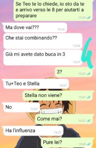 “Ci vuole coraggio. In tutti i sensi. È servito a me per fare quello che ho fatto ( avrei potuto fare finta di nulla, avrei potuto parlare con Teo per chiedergli spiegazioni, o anche semplicemente pensare positivo e non considerare l’eventualità di avere le corna) e ci vuole coraggio anche dall’altra parte. Teo e le sue ca**ate. La febbre a 39, la minestrina, i farmaci. Una colossale presa per il cu*o costruita quasi alla perfezione. Se non fosse che qui, come vi ho detto, ci conosciamo tutti…e quindi Teo è stato fin troppo ottimista. E io sono stata ingenua. Avrei dovuto ragionare da subito sulla misteriosa persona invitata a cena da lui. Chi poteva essere? Come faceva Teo a sapere della festa da Remo? Io non glielo avevo detto. Glielo aveva detto qualcun altro…qualcuno che conosce bene me e anche Teo. A volte le persone più insospettabili sono quelle che hai sempre davanti agli occhi…”