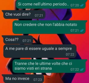 Io e lei siamo sempre stati bene, la nostra storia d’amore è stata una delle più belle (e non sono di parte, sia chiaro), ma nell’ultimo periodo l’ho vista cambiata. Fredda. Sfuggente.