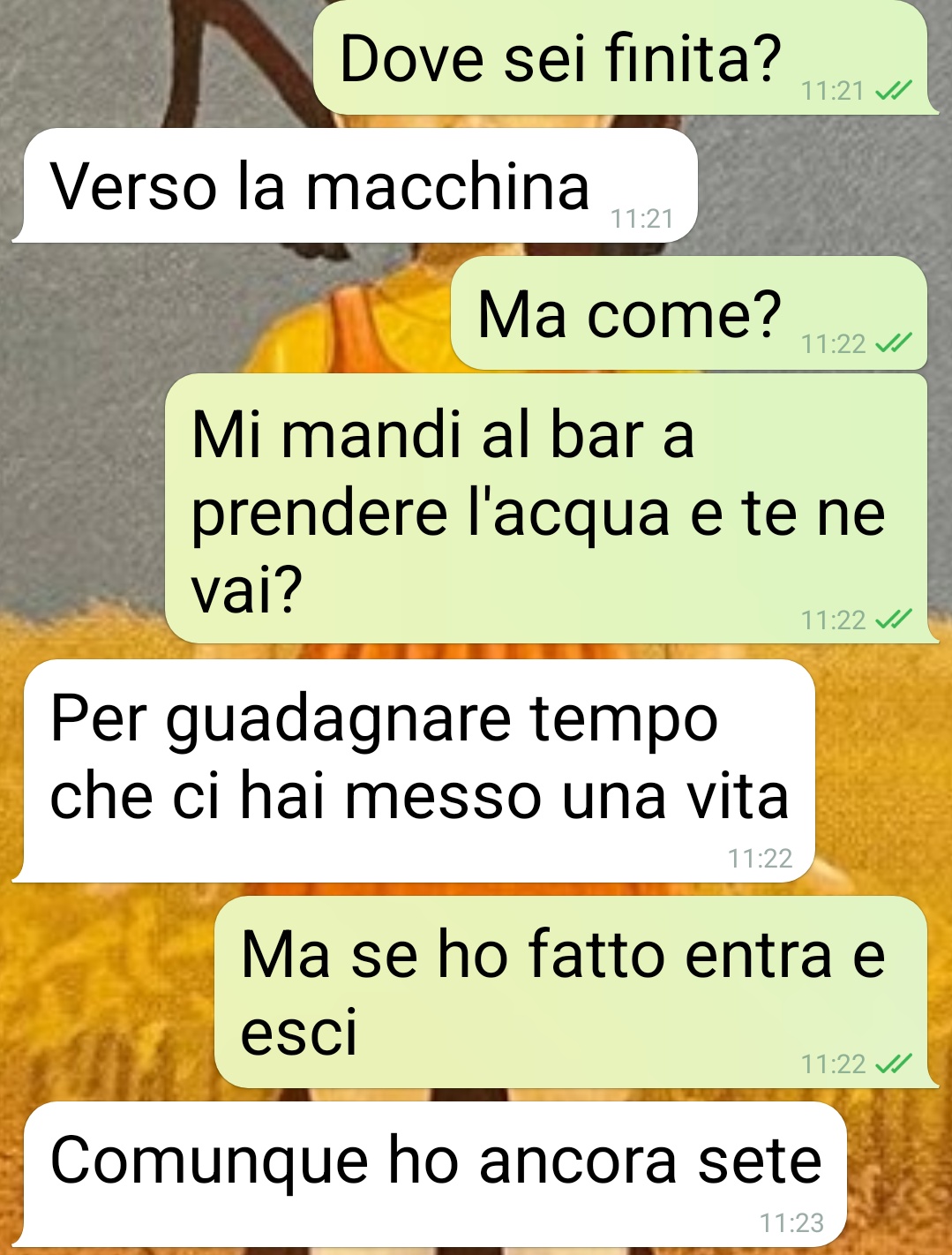Questa è da manicomio signori di spunte blu. E non una persona ma una intera famiglia. Forse pure tutto il paese a questo punto boh. Sono fidanzato con Giovanna da 2 anni e mi sono lasciato convincere a conoscere la sua famiglia la settimana scorsa. L’occasione è il battesimo di suo nipote, figlio della sorella. Prendo l’aereo, lei mi viene a prendere all’aeroporto, che era andata la settimana prima e l’obiettivo è passare anche qualche giorno dalle sue parti. Un paese piccolo, vecchio e arroccato sulle montagne. I primi 2 giorni ok e finalmente il giorno del battesimo. Finisce la messa e Giovanna ha sete, vado al più vicino bar a comprare una bottiglietta d’acqua. Torno alla piazza della chiesa e non trovo nessuno. E comincia così questa chat allucinante. È o no da manicomio? Sarebbe una mancanza di rispetto la mia? Qualcuno di voi avrebbe fatto diversamente?”