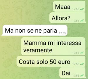Non ci trovo niente di strano. È solo un corso online per imparare ad aiutare le persone che stanno affrontando un lutto. Ho chiesto a mia madre 50 euro ma ecco cosa mi ha risposto.