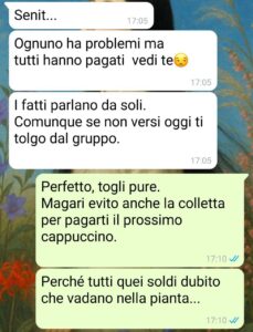 Scopro che chi fa domande è “poco collaborativo”. Che chi non paga rischia “l’esclusione dalle iniziative”.