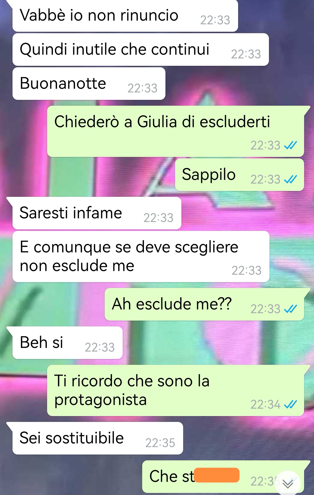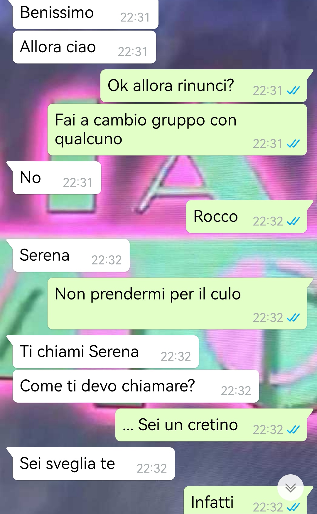 “Ciao a tutti mi chiamo Serena e voglio mandare questa chat per condividere con voi un momento importante della mia vita in cui ho capito molte cose. Prima di tutto devo essere onesta e dirvi quello che ho fatto : ho tradito il mio fidanzato dopo 5 anni di relazione.