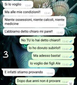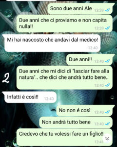Io devo dire che alcune cose le sto facendo di nascosto: sono anche andata da un medico.. perché farei qualsiasi cosa per avere un bimbo.. alcuni giorni fa però lui mi ha scoperta..”