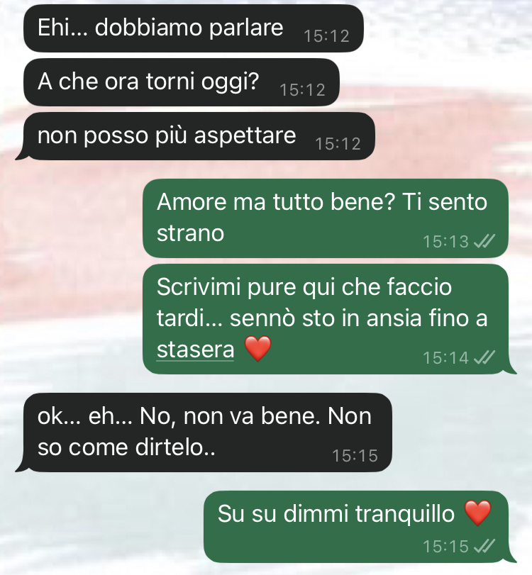 Però a questo punto non so neanche più come vedere tutti questi anni con lui e sono molto confusa. Come ci si riprende da un evento del genere? A qualcuno di voi è mai successo? Mi sembra che la mia vita sia finita…”