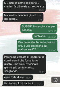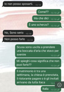 “Ciao spunte blu, vi scrivo per cercare consolazione. Sono in una valle di lacrime, non riesco a riprendermi. L’amore della mia vita nonché futuro marito mi ha scritto all’improvviso un messaggio assurdo e mi è crollato il mondo addosso, ho sentito la terra tremare sotto ai miei piedi. È stata una doccia fredda perché non mi aspettavo niente di tutto ciò. Abbiamo trascorso gli ultimi mesi a organizzare il matrimonio insieme a mio cugino Leonardo che è un bravissimo wedding planner, mia madre ha pagato il mio abito da sposa e i suoi genitori tutto il pranzo per gli invitati. Mentre un’altra mia cugina ha disegnato tutte le grafiche e ha confezionato gli inviti a mano. È stata una cosa di famiglia, fatta con cura e amore. Adesso non so proprio come faremo. Non posso credere a ciò che mi ha detto, soprattutto perché non è stato del tutto sincero e solo alla fine ha voluto dirmi tutta la verità. Ma anche io avevo una notizia per lui.