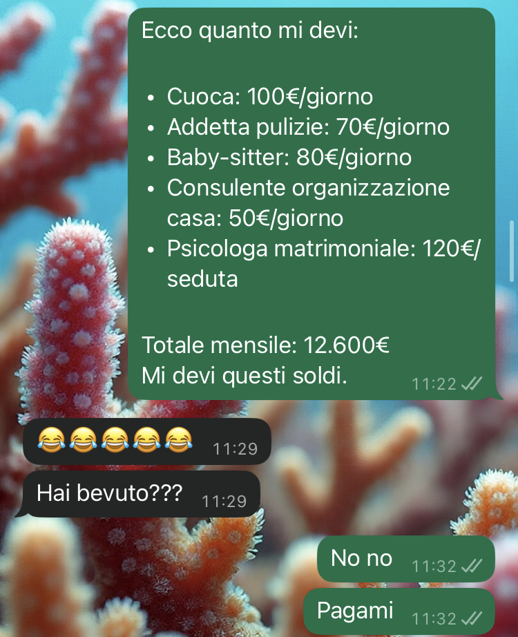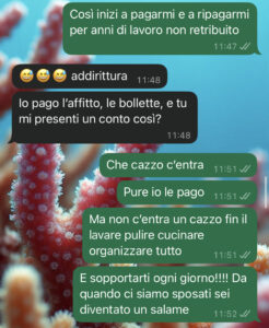 Leggete voi con i vostri occhi e ditemi cosa devo fare perché adesso non so più come andare avanti. La sua reazione mi ha spiazzata! I vostri mariti come sono a casa??”
