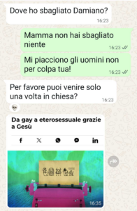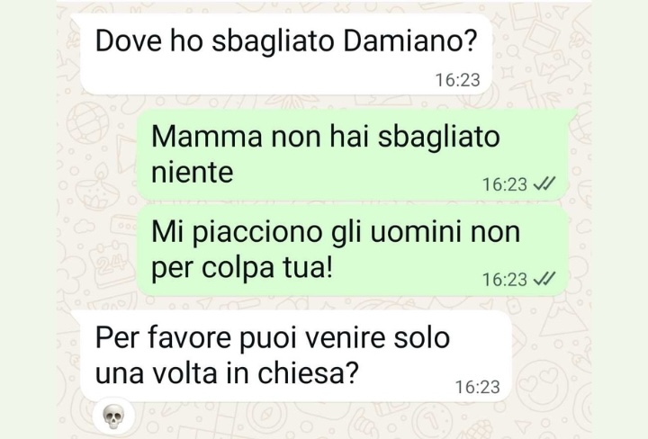 “Spunte ciao, mi chiamo Damiano ho 27 anni. Mia mamma non mi accetta per quello che sono. Mi sento di combattere una guerra continua contro me stesso. Sono stanco.