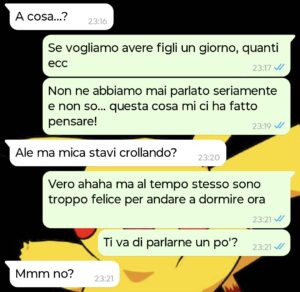 Torno a casa e sull’onda delle emozioni della serata chiedo a Ludo cosa ne pensi del tema dei figli: quando, quanti ecc. Ma la risposta che ricevo è a dir poco inaspettata. Non è che non li vuole, ma non ne vuole di propri. E se devo dirla tutta, per me la motivazione è ancor meno comprensibile.