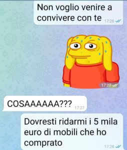 “Non voglio andare a convivere con Lidia. Rivoglio i miei 5 mila euro!!